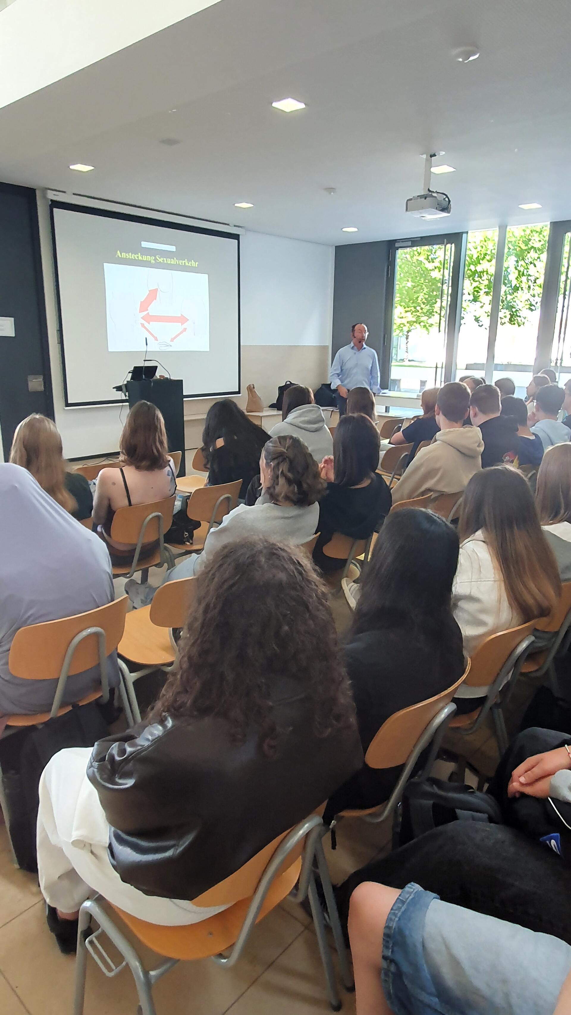 Sex ist unter Jugendlichen ein großes Thema. Daher ist es von besonderer Bedeutung zu wissen, mit welchen Krankheiten man sich anstecken kann und welch schwerwiegende Folgen diese Infektionen haben können, wenn sie nicht frühzeitig behandelt werden. V.a. darum ging es in dem Vortrag von Herrn Dr. Zippel von der LMU.